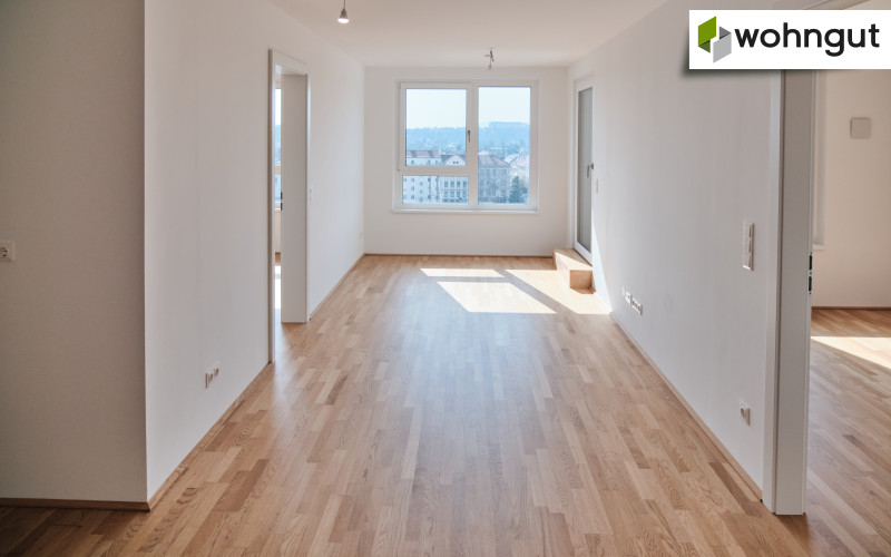 Diese sonnige, südseitig ausgerichtete 3-Zimmer-Eigentumswohnung überzeugt durch eine durchdachte Raumaufteilung, viel Licht und eine großzügige Terrasse mit Blick Richtung Gloriette – ein Ort zum Entspannen, Frühstücken oder gemütlichen Beisammensein.